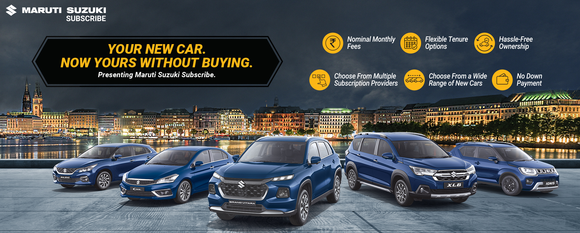 Located in Alwar, Fortune Cars (Jyoti Automobile) offers a plethora of options of Nexa cars for Maruti Suzuki Subscribe. You can choose your desired Maruti Suzuki car and drive it home at nominal monthly fees for a variety of flexible tenure periods. Whether you prefer Hatchback, Sedan, SUV or even MUV you are sure to find it at Fortune Cars (Jyoti Automobile), Manhar Villa Alwar with an easy Maruti Suzuki Subscribe plan.